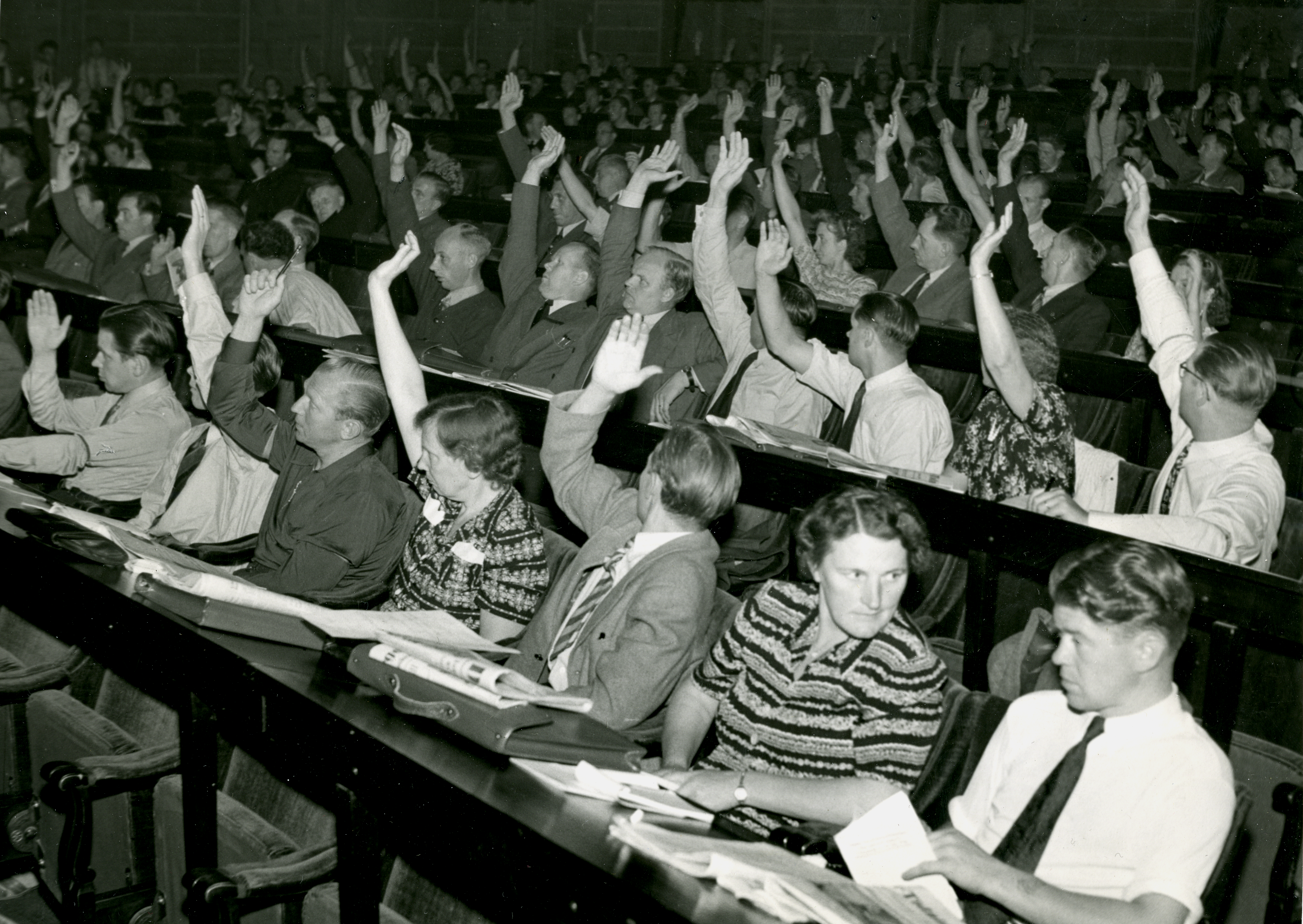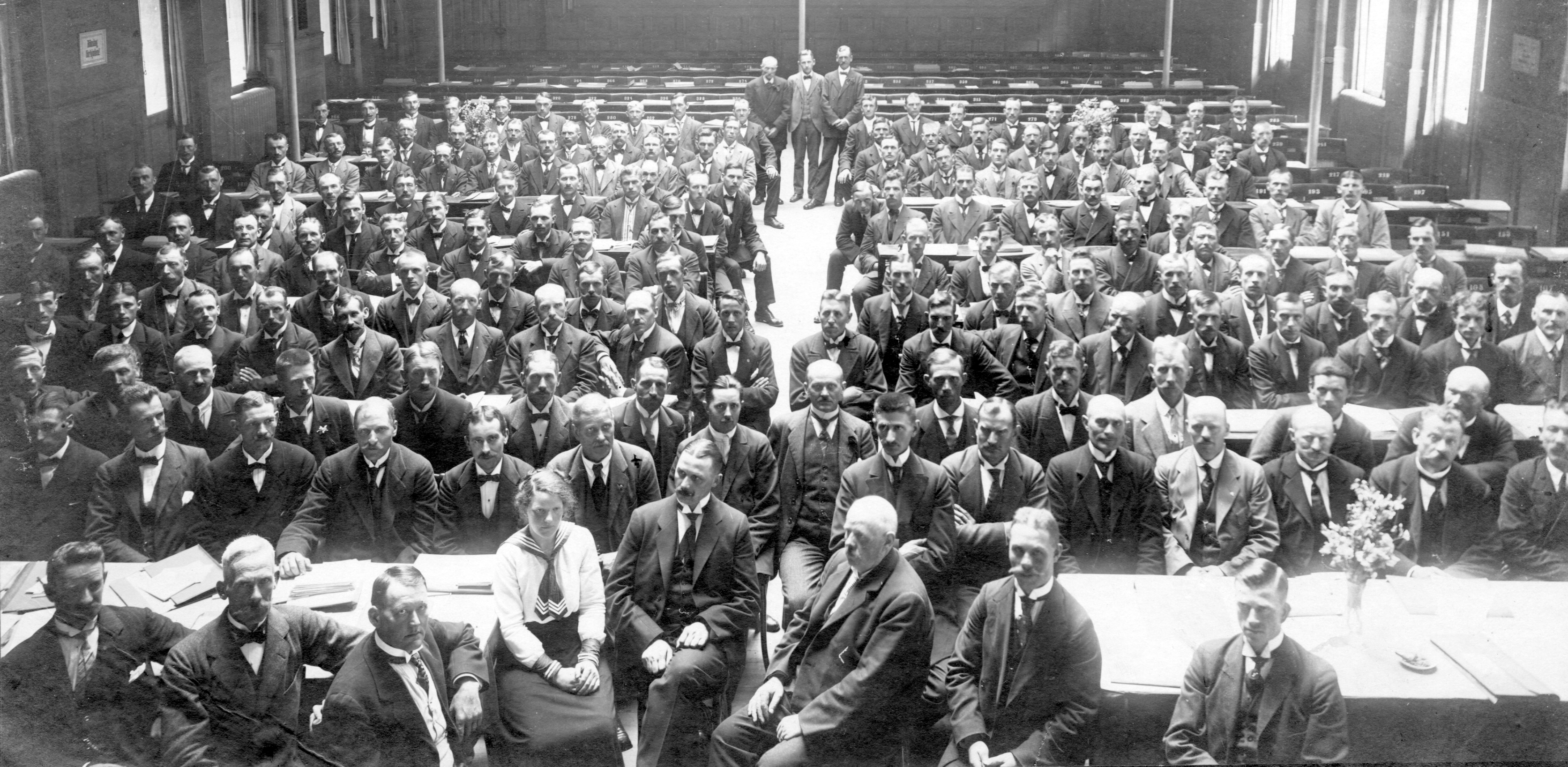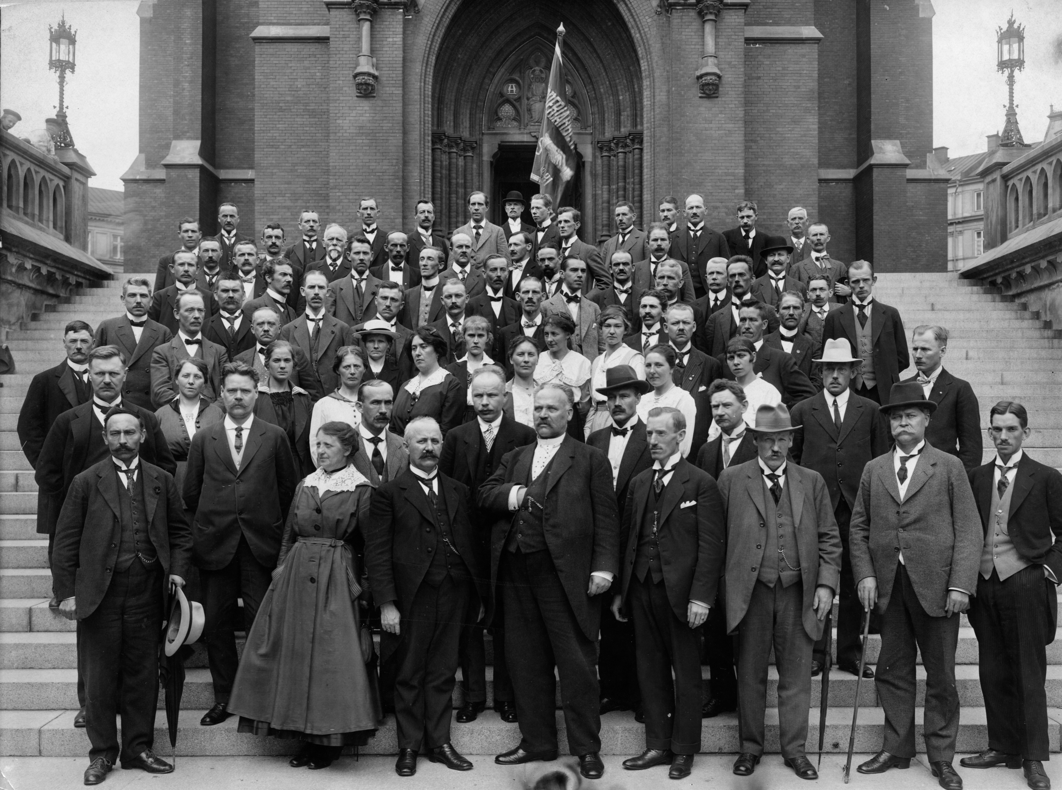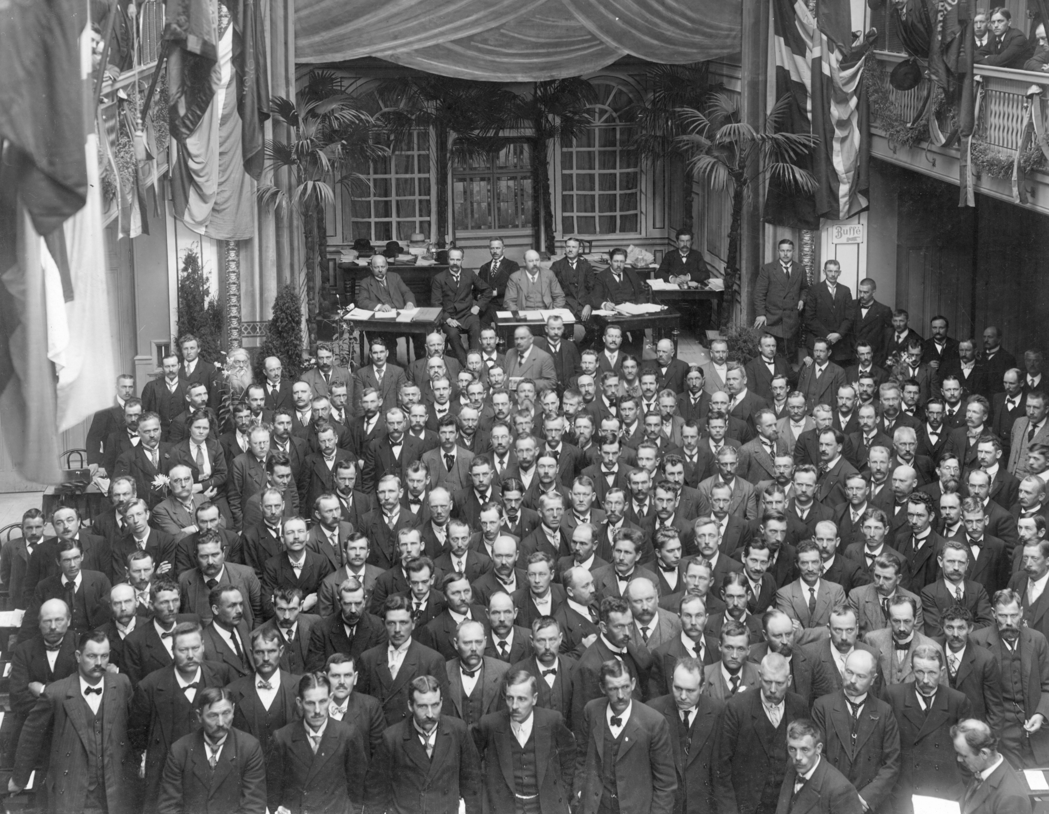 Delegates of the congress, in Folkets Hus A-sal in Stockholm, 1918